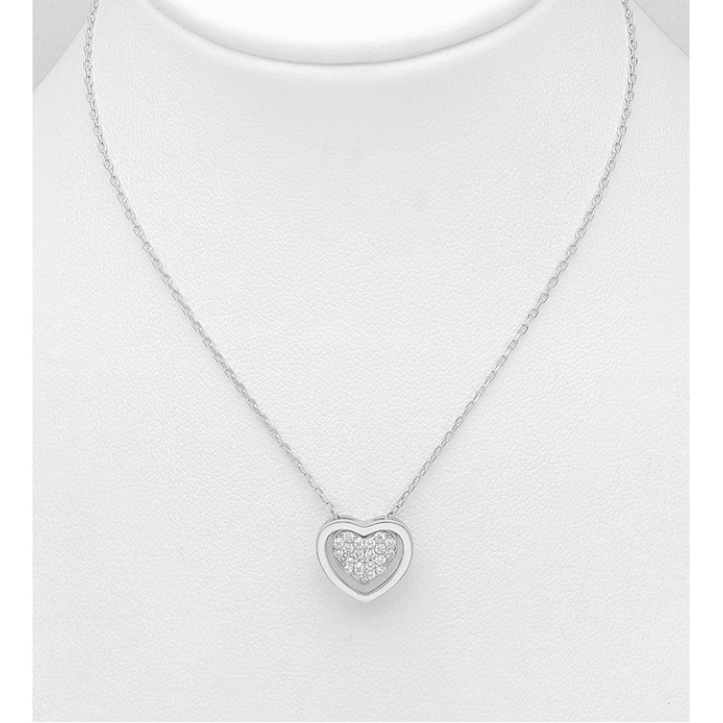 Kovina: srebro (žig 925)Obloga: rodijKamen: cirkonijVelikost obeska: širina 11 mm, višina 10 mmVelikost: 41¼ - 46¼ cm