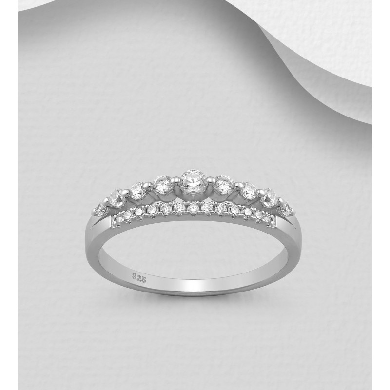 Kovina: srebro (žig 925)Obloga: rodijKamen: cirkonijŠirina vrha: 4 mm