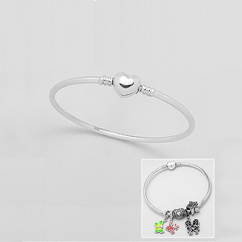 Srebrna zapestnica za obeske s srčkom